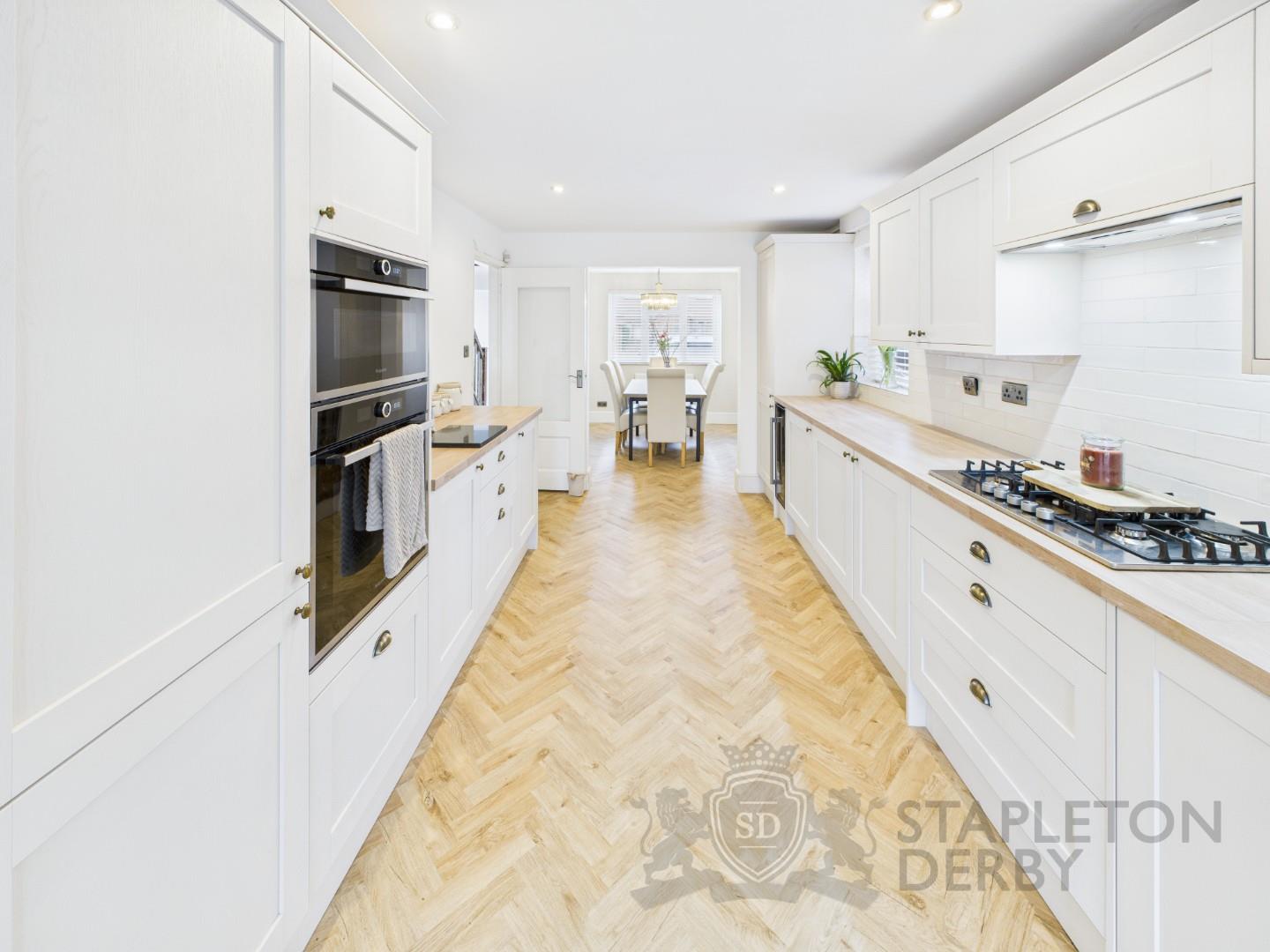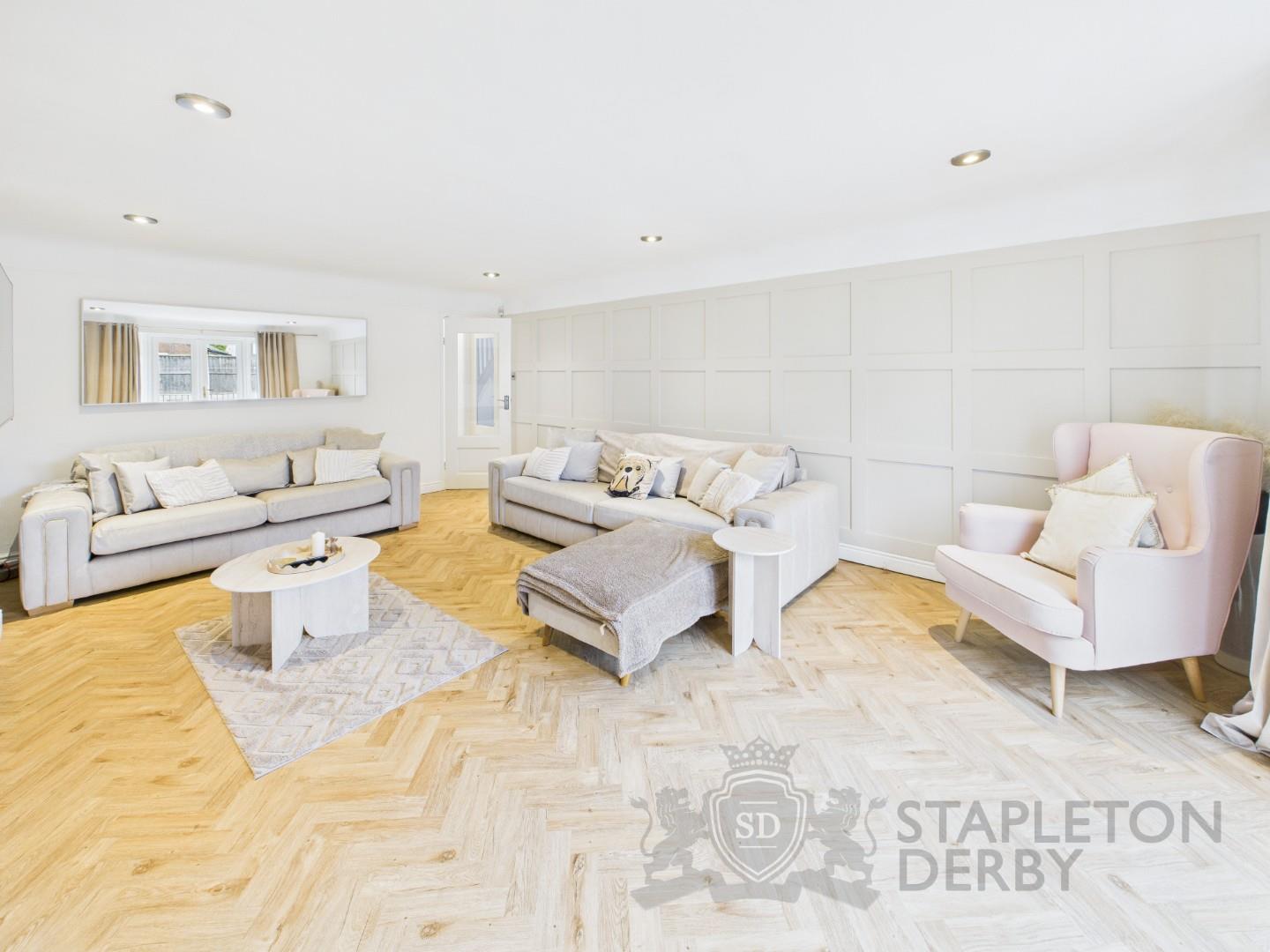 The accommodation comprises a welcoming entrance hallway that leads to a cosy snug lounge, a spacious living room, a dining area, and a modern kitchen, as well as a downstairs WC. To the first floor, there are four generously sized double bedrooms, one of which benefits from its own ensuite, along with a contemporary family bathroom. Internally, the property has been extensively modernised throughout, finished to an exceptional standard with no expense spared. Externally, the front of the property offers off-road parking for multiple vehicles, a double garage, and convenient side access to the rear. The rear garden is a real highlight, boasting a large lawned area and patio, perfect for outdoor dining and entertaining.