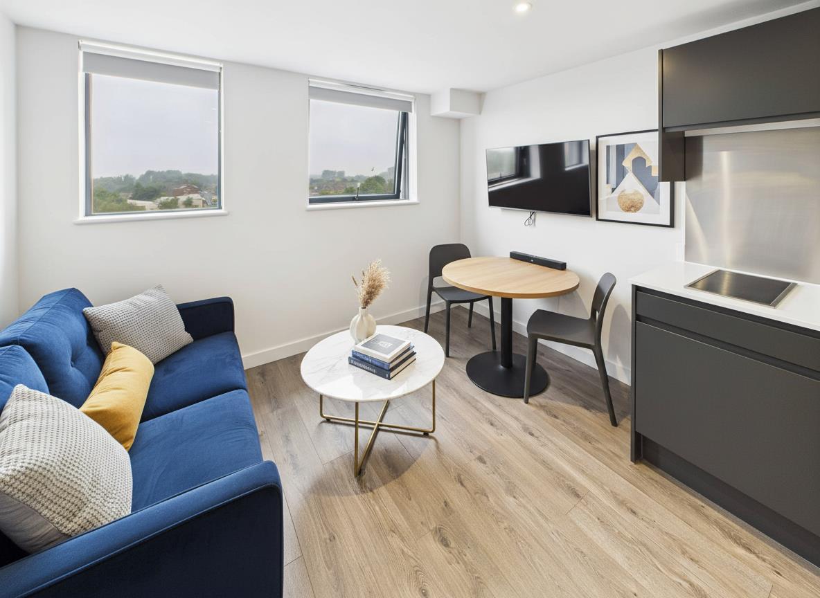 Please note: The images shown are from another studio apartment within the same building. All studio layouts in this development are identical in size, specification, and finish, so the photographs provide an accurate representation of the available property.