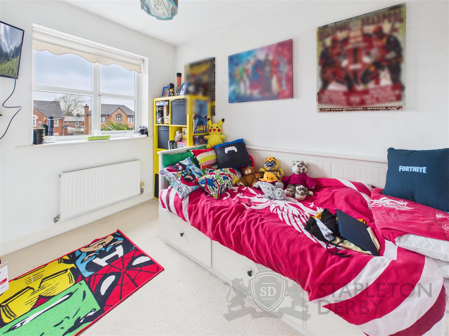 The master bedroom features an en suite shower room, adding a touch of luxury and privacy, while the remaining bedrooms share a modern white suite bathroom. This home is designed for modern living, with thoughtful touches throughout.