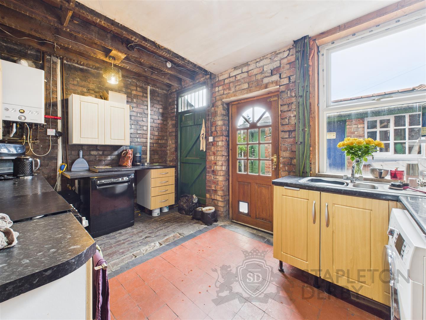 In addition to the main living areas, the house includes a cellar for extra storage, a detached tandem garage, and brick outbuildings, offering even more space for your belongings. The property overlooks the picturesque Bruche Park, providing a serene backdrop and a lovely outdoor space for relaxation.