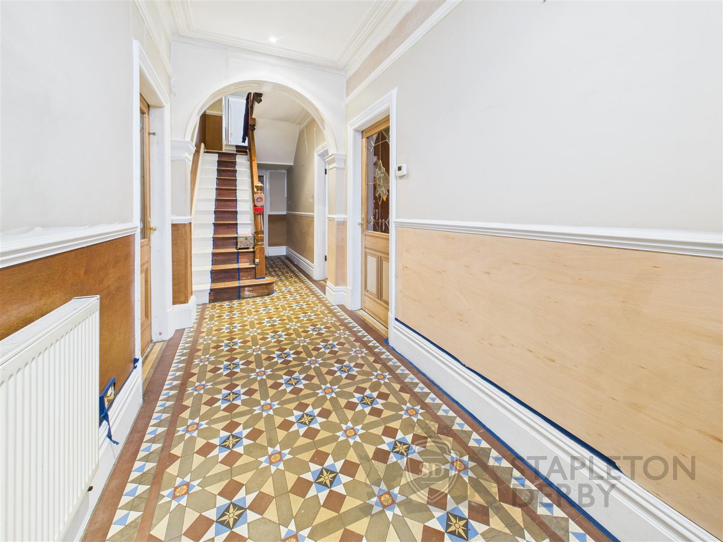 The residence features four very well-sized bedrooms, with the fifth bedroom perfect for a home office or young child's bedroom, ensuring plenty of space for family and guests. The split-level landing adds a touch of character, while the three reception rooms provide versatile living areas that can be tailored to your needs. The original flooring in the hallway adds a sense of history and charm to the property.