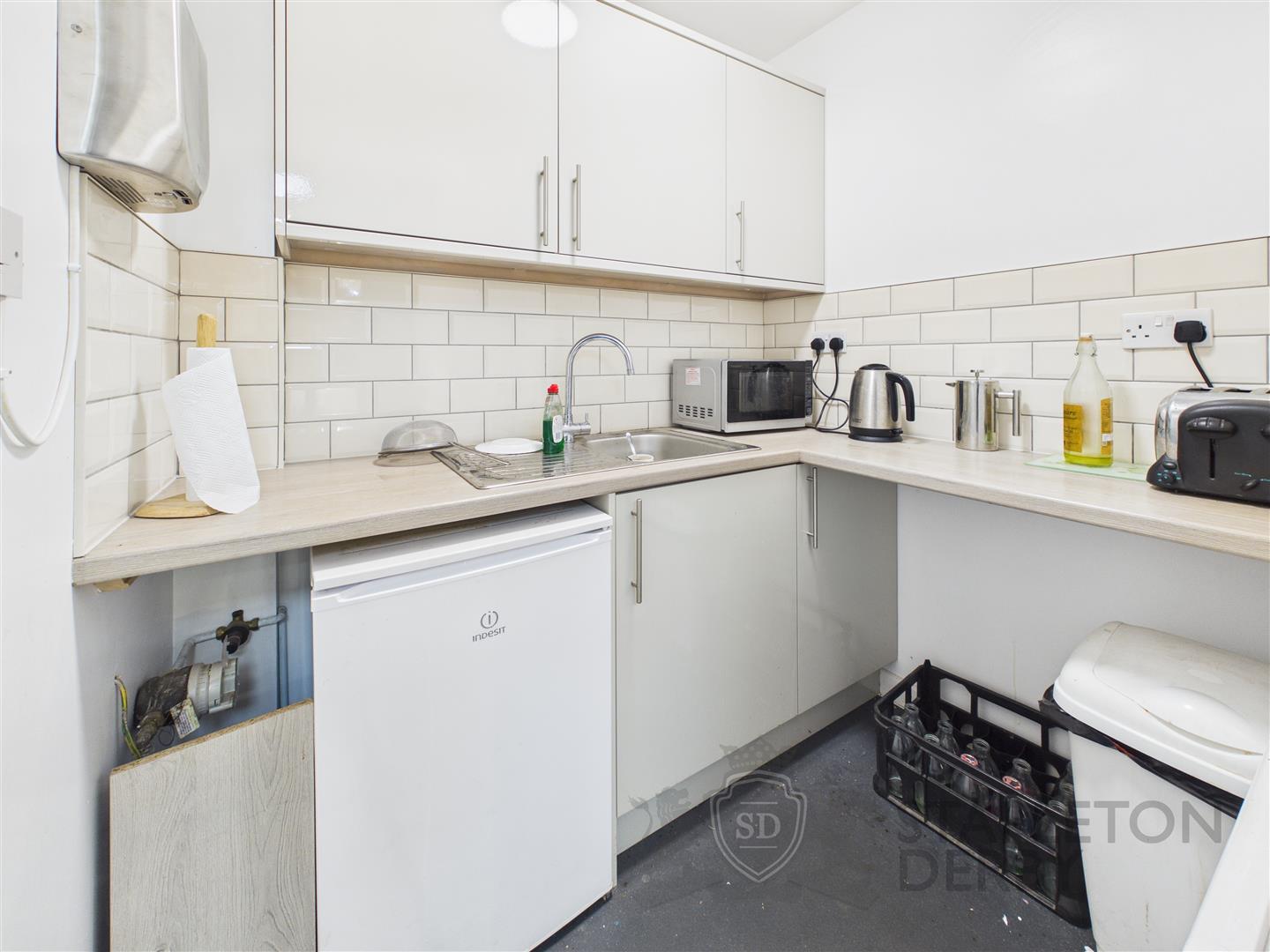 The unit features three well-appointed internal offices, providing ample space for administrative tasks and meetings. Additionally, there are customer WC facilities and a small kitchen area, ensuring convenience for both staff and visitors. The front reception area offers a welcoming entrance, while the first-floor storage space enhances the unit's functionality, allowing for efficient organisation of goods and materials.