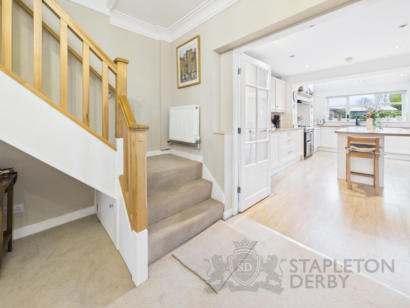 Internally, the accommodation is thoughtfully arranged and finished to a high standard throughout. The ground floor comprises a welcoming porch, spacious living room, cosy snug, downstairs WC, utility room, and a stunning open-plan kitchen/dining area that overlooks the rear garden and showcases panoramic views of the surrounding farmland. To the first floor, there are three generously sized double bedrooms, including a master suite with fitted wardrobes forming a dedicated dressing area, alongside a modern family bathroom. A further staircase leads to a versatile loft room, perfect as a fourth bedroom, home office, playroom, or additional storage space. Externally, the property benefits from both off-road and on-road parking, a front lawn, and gated side access with additional parking capacity. The rear garden is a true highlight—featuring a large lawn and patio area that directly overlooks open fields, offering a peaceful and private outdoor retreat.